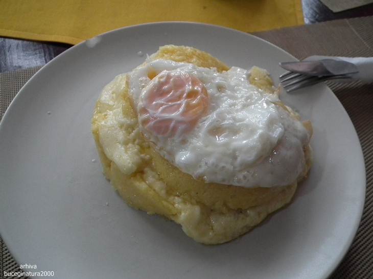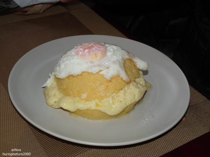 Farfuria nu conta dar nici pe bulz nu-l pune prea bine in evidenta. Dar e cel mai mare bulz si cel mai bine facut… mancat de cand ma stiu. Prin interior branza de burduf originala si costita, mamaliga nu era nici multa nici putina, mi s-a parut ca e mai multa branza decat mamaliga.