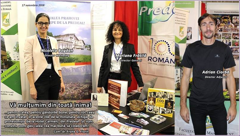 Mai adaug o poza de echipa…. alaturi de care am reprezentat cu succes Hotelul Carmen si Predealul, la Targul de Turism. Cu aceasta serialul turistic se incheie. Colajul foto este realizat de d-l profesor dr. Florin Frone, tot de la USAMV Bucuresti.