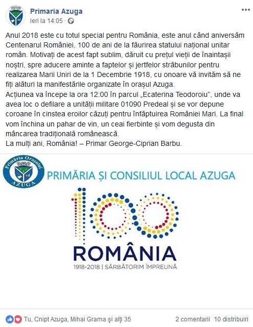 Eveniment Pregatiri de 1 Decembrie in Valea Superioara a Prahovei (II) Publicat de buceginatura2000 on noiembrie 30, 2018 Continuare… Azuga: Busteni: Sinaia: Dă clic pentru partajare pe WhatsApp(Se deschide într-o fereastră nouă) WhatsApp Dă clic pentru a trimite o legătură prin email unui prieten(Se deschide într-o fereastră nouă) Email TweetApreciază Încarc... Similare