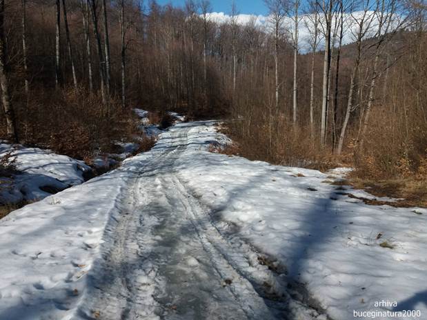 Traversam soseaua ce duce in dreapta la Comarnic, la stanga spre Valea Doftanei… mergem drept inainte. Vazusem de departe ca o sa intram iar prin noroaie dar na, traseu sa fie…