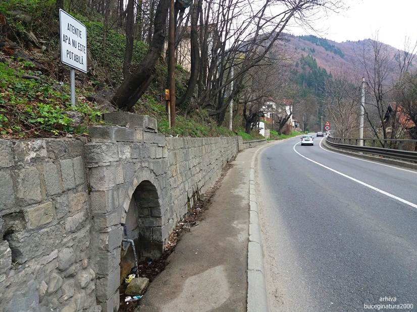 Aceasta de la DN1, nu departe de gara Sinaia, are panou. Adica apa nu este buna de baut. La fel ca si la Izvorul Rece. Recent am auzit ca nici aceea de la o fantana din centrul Predealului nu ar fi buna. Este un fel de cismea langa biserica…