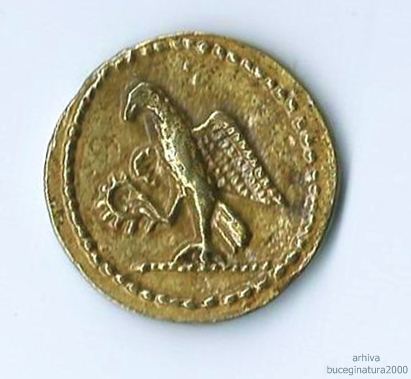 In interior era si o moneda, o replica a unui koson, prinsa cu un adeziv.