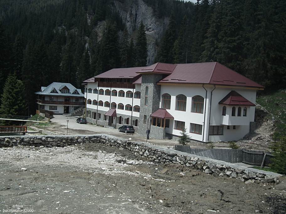 Cladirea de la intrarea in Pestera Ialomitei. Imagine din Piciorul Babelor.