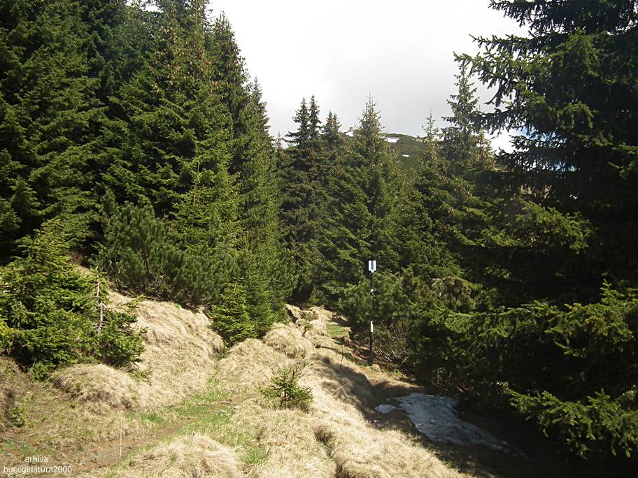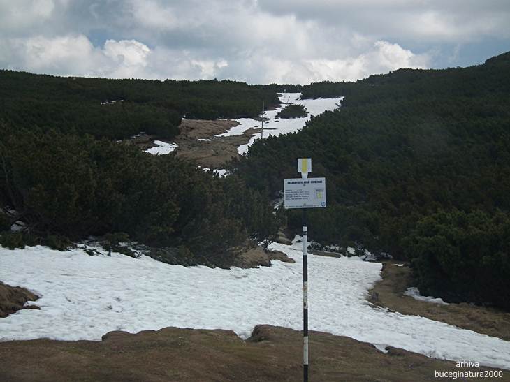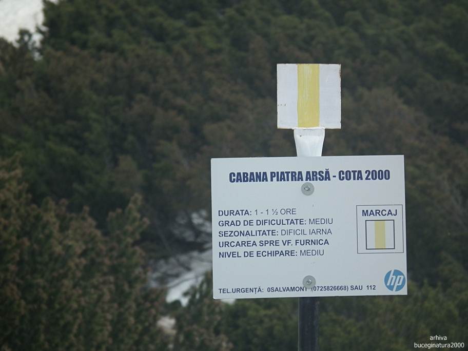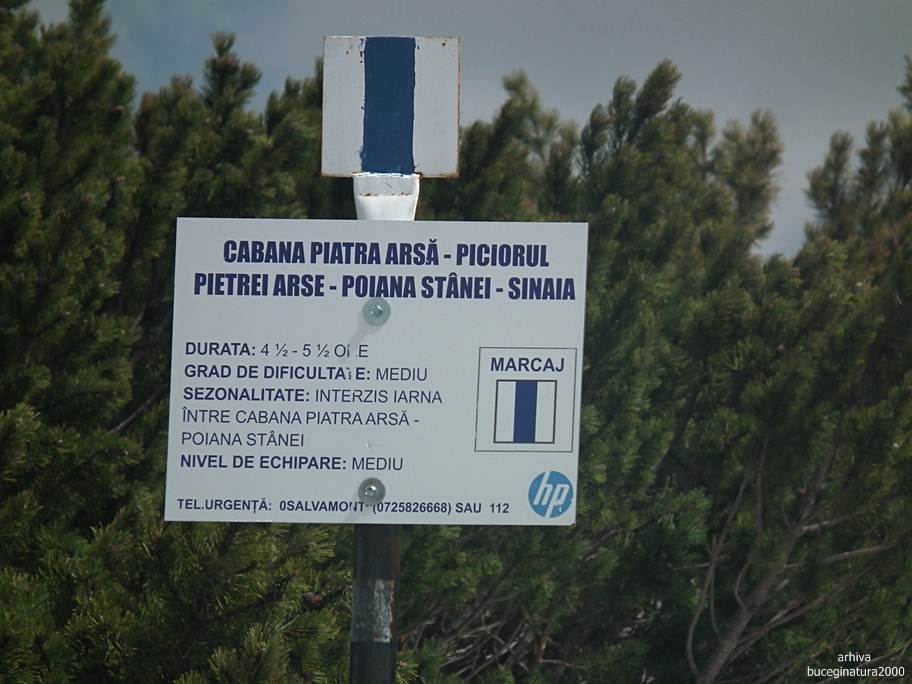 Si urmam traseul cu banda albastra, stabilind ca durata traseului arata cam ciudat. Trei ore pana la Sinaia este un timp real. Daca de la Piatra Arsa la Sinaia, unde traseul inseamna in proportie de 90% coborare, faci 5 ore, cat faci din Sinaia la Piatra Arsa? :) Eu cred ca timpii de pe panou sunt de fapt timpii de urcare… chiar si la urcare mi se pare mult de tot sa faci 5 ore si jumatate.