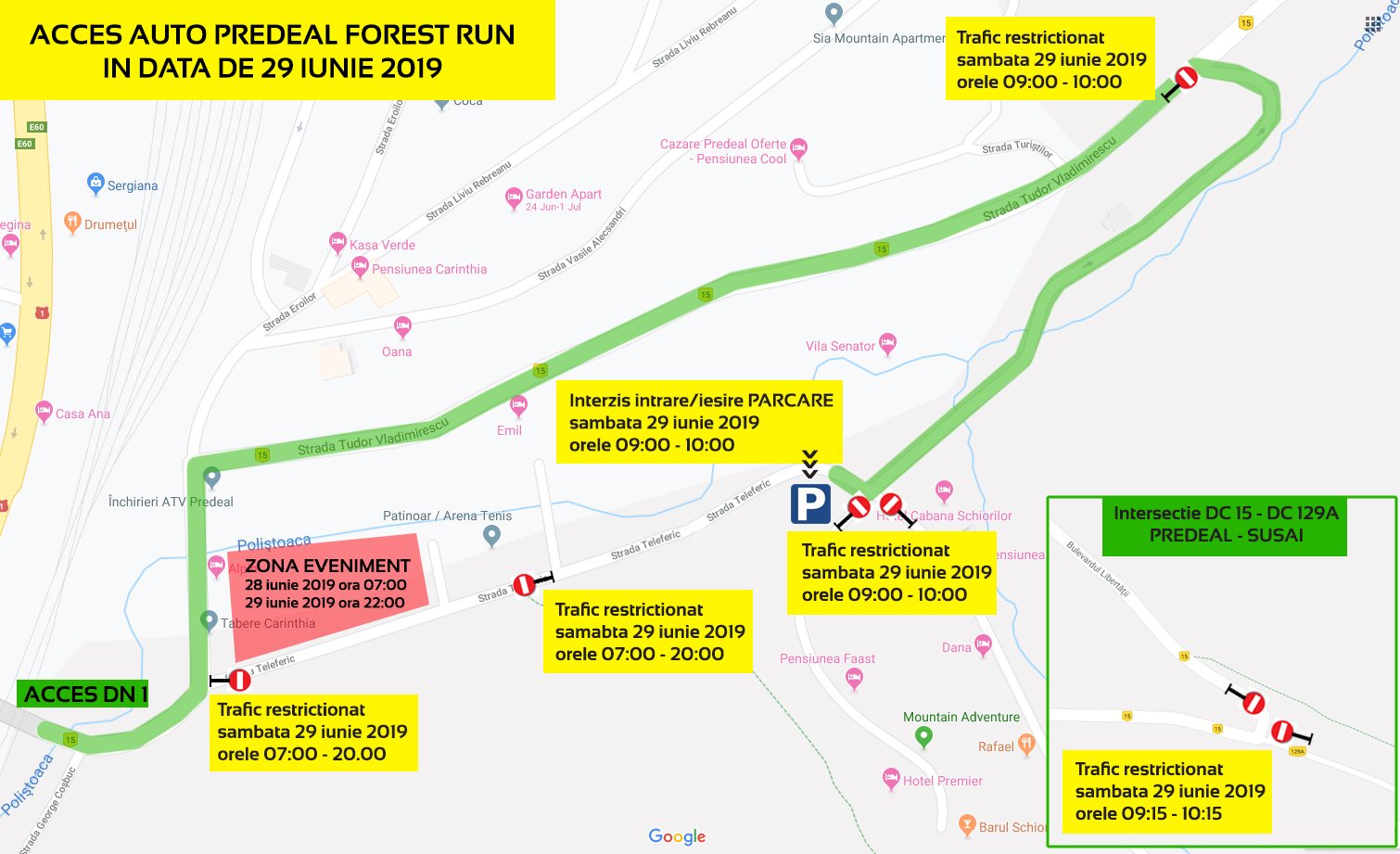 Organizatorii Predeal Forest Run, eveniment cu circa 1000 de participanti, au si niste precizari legate de acces: