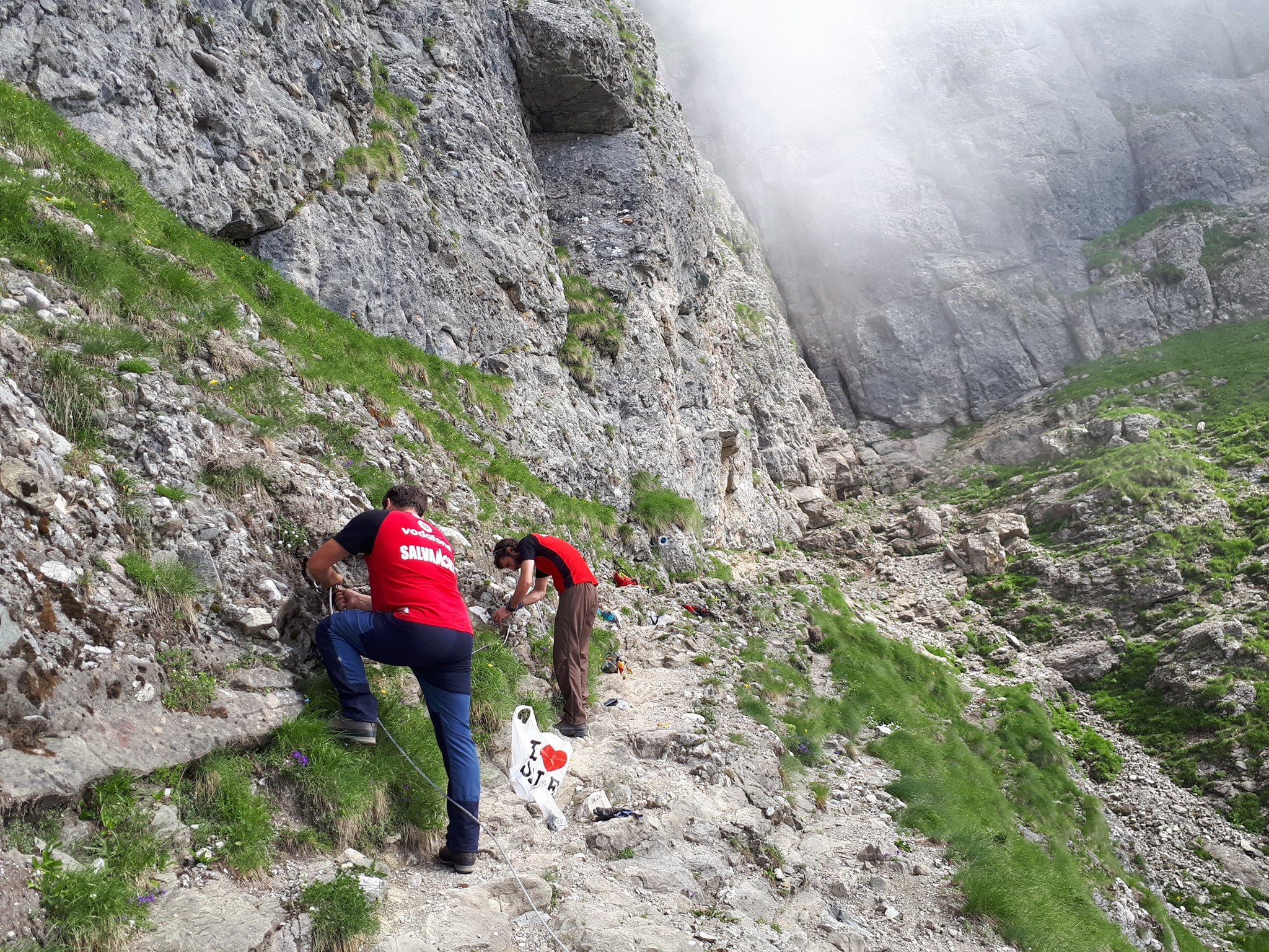 Salvamontistii din Busteni continua seria de reparatii pe traseele turistice ale orasului, in Bucegi: