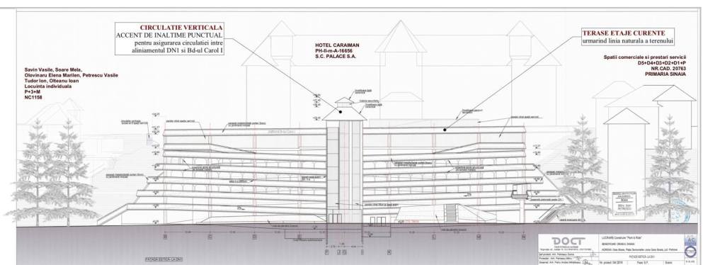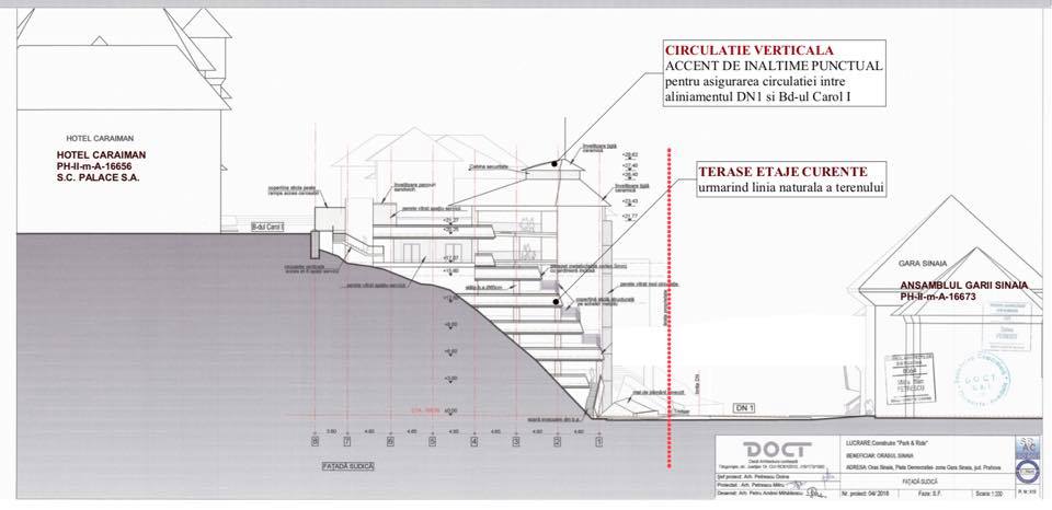 Motivele sunt simple: avem aproape 700 de navetiști, dar și un număr mare de turiști sau oameni de afaceri care poposesc în Sinaia pentru câteva ore sau cateva zile. Cea mai bună variantă atât pentru ei, cât și pentru comunitate, este intrarea direct din DN1 într-o parcare modernă, unde iși pot lăsa în siguranță automobilul, pentru ca apoi să acceseze facil zona centrală a orașului, pe jos, cu autobuzul sau cu bicicletele si trotinetele electrice care vor putea fi închiriate de pe esplanada creată sus, la Bulevardul Carol I. Astfel, dupa modelul confirmat de experienta altor orase europene, minimalizăm traficul auto în interiorul orașului și protejăm zonele istorice de și mai multe mașini parcate pe trotuare sau carosabil, ambuteiaje și trafic sufocant în sezon.