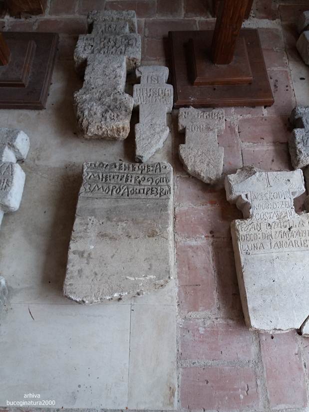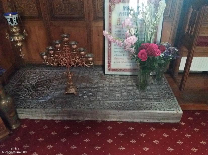 La aceasta manastire au fost de-a lungul timpului mai multe persoane ingropate insa, nu se mai stie exact unde a fost fiecare. In muzeu, mai sunt resturi de placi ce acopereau in trecut diferite locuri de veci. Biserica a fost refacuta din temelii in anul 1854 astfel ca… nu cred ca e sigur ce mai acopera piatra de mormant din imagine. Poate este doar piatra de mormant si atat.