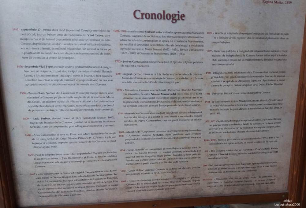 Aici au fost aduse osemintele domnitorilor Radu Serban si Nicolae Patrascu , in 1640 sau 1641, in vremea domniei lui Matei Basarab, de catre Anca, sotia lui Nicolae Patrascu si de catre Elina, sotia lui Radu Serban. Interesant este faptul ca Radu Serban, continuator al politicii lui Mihai Viteazul nu prea il agrea pe Nicolae Patrascu, fiul lui Mihai Viteazul. In anul 1609, Radu Serban chiar il insemneaza la nas, practica obisnuita in acele timpuri, prin care se anula dreptul la domnie. In anul urmator insa, cei doi se impaca si fiica lui Radu Serban, Anca, se casatoreste cu Nicolae Patrascu. Destinul a facut ca amandoi domnitorii sa se regaseasca la Comana.