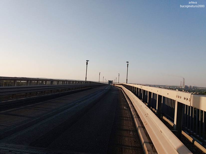 La podul metalic recomand ceva: pe una din partile acestui pod este loc sa mergi cu bicicleta in voie. Pe cealalta este o tubulatura si e greu. Dar nu conteaza sensul, cand nu sunt masini sau e coloana, te poti duce pe partea mai lata. In acest fel, este mult mai safe decat pe langa masini. Tirurile trec foarte aproape de tine. Si, in principal, cine sta mult pe la vama nu prea are rabdare, tu cu bicicleta ii mai si incomodezi. Am avut noroc ca am prins doar 2 tiruri la intoarcere pe pod.