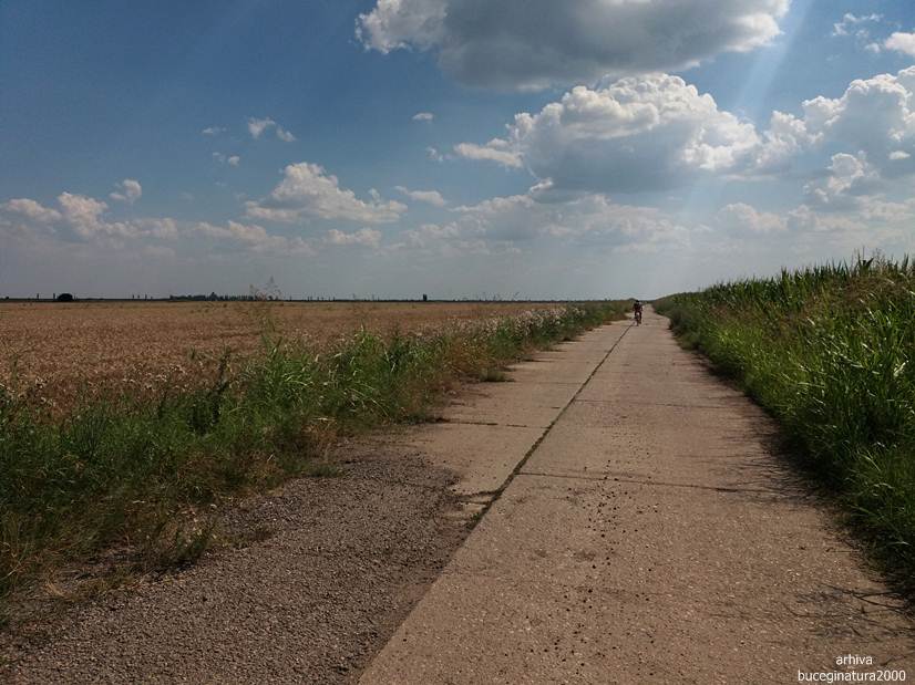 Mergem conform planului pana la gara Mihai Bravu dorind sa continuam si mai departe, sa intersectam drumul dintre Giurgiu si Oltenita. Dupa gara, vreo 7 km mergem pe un drum plin de gropi, un cosmar pentru masini. Abia eviti cat de cat cu bicicleta nenumarate cratere. De altfel, nu am intalnit decat un apicultor, cu o rabla de Dacie, ce tot ducea apa la sutele de stupi risipite prin intinderile nesfarsite :)