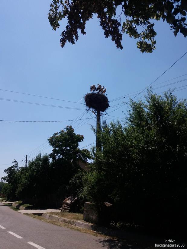 4 berze si multe vrabii care isi facusera cuiburile… sub cuibul mare al berzelor.