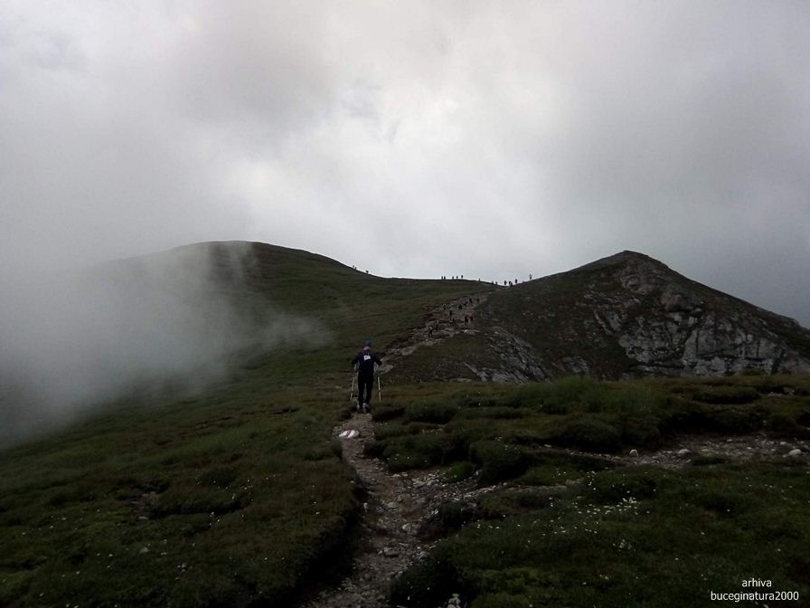 Si se vede Vf. Bucsoiu. Pana acolo am trait o alta revedere frumoasa… cu Marius Sendre, alt CPNT-ist. El statea intr-un punct periculos ca nu cumva vreun concurent sa iasa din traseu pe acolo si sa se accidenteze. Organizatorii maratonului sunt niste tineri care pun mult suflet in ceea ce fac, cu multa responsabilitate. Fiecare dintre cei care pun umarul la acest concurs este un exemplu. Fara calitate umana nu faci nimic. Oameni pe care-i daca privesti in ochi, te vezi in ei asa cum ei se vad in ai tai. Marathon 7500 si MPC sunt niste chestii pe care le intelegi doar atunci cand le traiesti. Cu oamenii de acolo vei fi prieten toata viata si dincolo de ea…