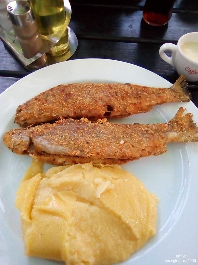 Cu 35 de lei, iei orice fel doi. Anterior, incercasem sarmalele cu mamaliga. Acum altceva.. sunt 2 pastravi la o portie, servire eficienta, oameni draguti, nu tertipuri… :)