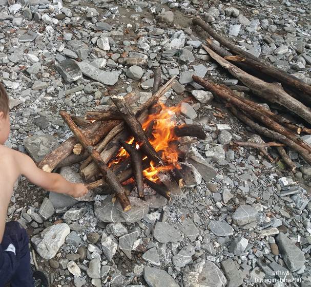 Oriunde mergem, copiii trebuie sa-si faca focul lor. Sa stie sa aprinda un foc oriunde ar fi. La inceput e greu… dar cand esti dispus sa arati de vreo suta de ori :)) nu-i asa mare problema. E vital pe munte sa stii sa aprinzi focul.