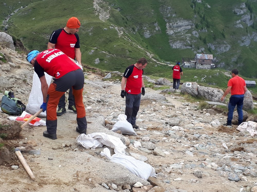 Saptamana trecuta, Salvamontul din Busteni a amenajat oarecum drumul ce coboara la fosta cabana Caraiman, pentru a ajunge si mai repede in caz de urgenta: