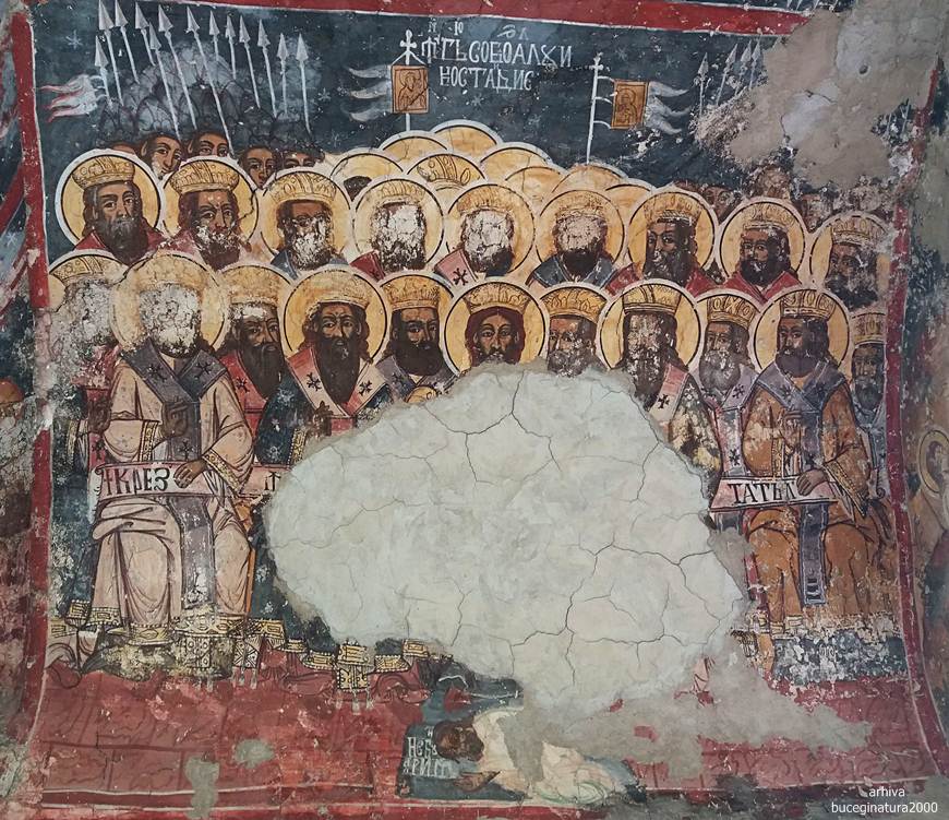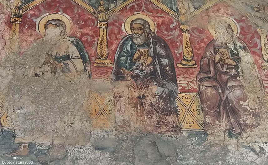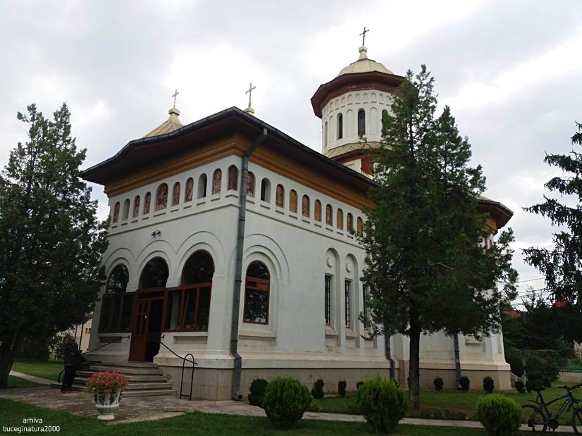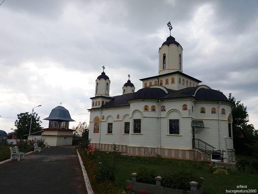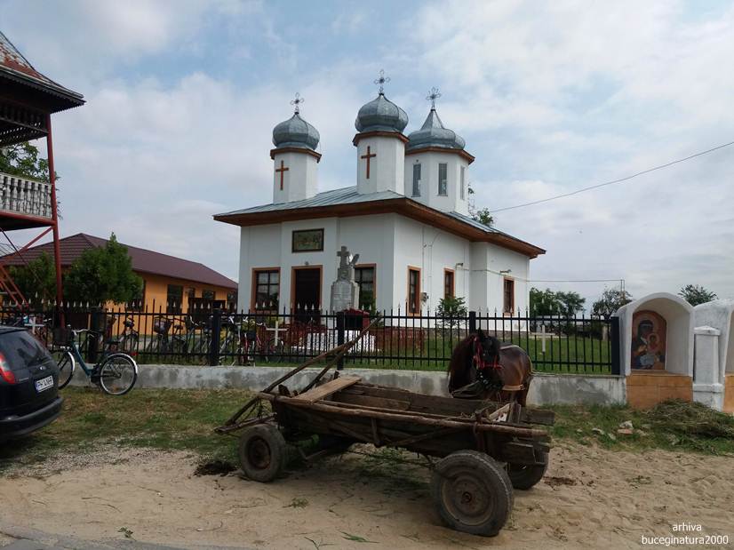 Si cum stateam noi pe aici la poze, apare preotul paroh. Venea de undeva de pe o strada. Ne vede, intram in conversatie si nu apucam sa spunem prea multe ca dumnealui ne roaga insistent sa mergem la o cladire aflata la vreo 100 m distanta. Fiind hramul manastirii se facea acolo un praznic/pomana. Incercam sa scapam, ca ne grabim, ca nu stiu ce, dar nu aveam nicio portita. Parintele, ne spunea ceva ca asa se face, calatorii pe la manastiri care nu stiu ce… O luam pe langa biciclete spre directia indicata, noi stiam cladirea ca doar trecusem anterior pe langa ea si o vazusem ticsita de lume. Observam ca parintele se urca in masina, anterior ne promisese ca dupa masa, ne deschide biserica sa pozam. Pleaca parintele la treaba lui, plecam si noi dupa el :) Foarte frumos gestul parintelui dar nu suntem genul… Cred ca daca era vreo strada prin apropiere adica sa fi fost nevoit sa ocolim cu 100 km, pe acolo as fi luat-o :))) Noroc ca nu ne-am mai intersectat cu parintele… Dansul, om fain, dar nu ai cu cine… :) Post nu tinusem si ochii ne mai fugeau dupa localnice, asa ca…