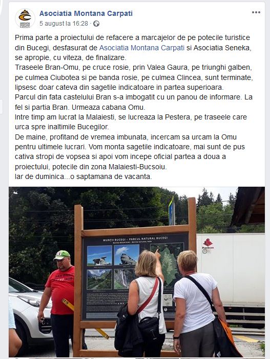 Cine a mers prin zona traseelor turistice de la Vf. Omu, in aceasta vara, cred ca a observat cum mai multi tineri refac marcajele turistice, vopsesc stalpi, pun panouri etc. Este vorba de actiunea complexa de refacere a infrastructurii de orientare turistica din zona inalta a Bucegilor, actiune initiata de Asociatia Montana Carpati. Evident, Bucegii sunt doar o etapa din proiectul acestei asociatii. Membrii acesteia si voluntarii au refacut marcaje prin tot felul de munti ai Romaniei.