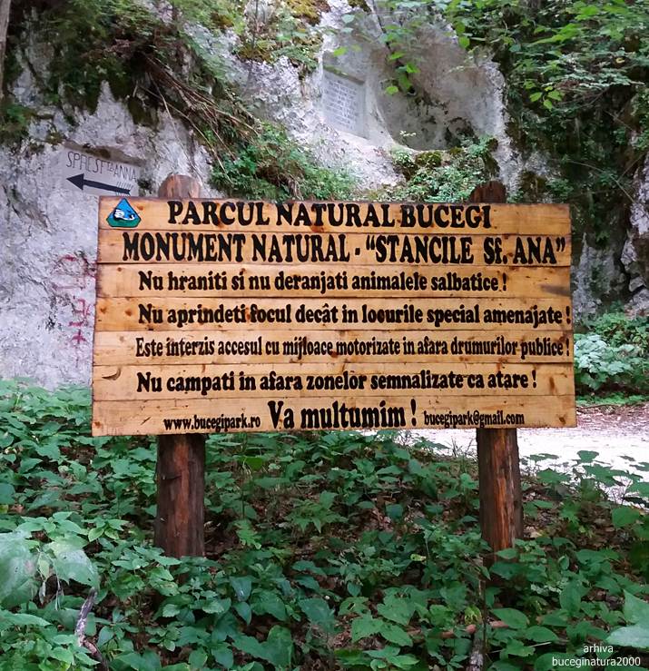 7 septembrie 2013. Reprezentanti ai Administratiei Parcului Natural Bucegi, Jandarmeriei, localnici, initiatorul actiunii d-l Radu Lipsa si parintele Tanase Benone au participat la actiunea de sfintire a unei icoane restaurate, la Stancile Sf. Ana. Vechea icoana, aflata in perete stancos, devenise cu trecerea timpului atat de stearsa incat necesita restaurarea acesteia. A fost chemat un pictor profesionist, s-a lucrat zile in sir si in septembrie 2013 a avut loc sfintirea. Ieri, 07.09.2019, am fost si la aceste Stanci dar si la Poiana Stanei Regale…