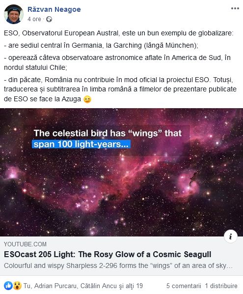 Mai aflam un lucru interesant de la Azuga… despre Observatorul European Austral: