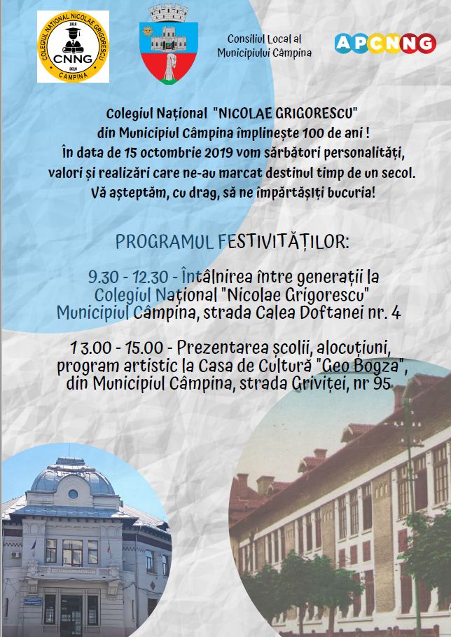 Centenarul celui mai vechi liceu din Valea Prahovei, actual „Nicolae Grigorescu”: