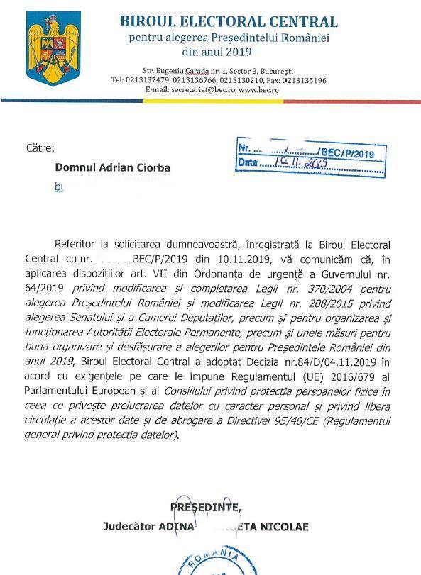 Ce vreau sa zic… In seara zilei de 09.11.2019 am intrebat acest B.E.C. cum este posibil ca reprezentant al unui partid, sa depui cerere ca vrei copii de pe listele suplimentare?