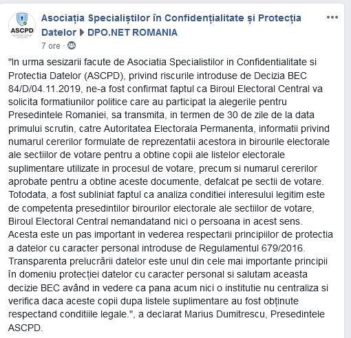Cine a fost prezent in primul tur la alegerile locale si ma refer la cei care au alcatuit Biroul Electoral al vreunei sectii de votare, au vazut ca in timpul „jocului”, pe 10.11.2019, Biroul Electoral Central a trimis un mesaj prin care se cereau niste declaratii de confidentialitate. Ulterior, pana la turul 2 a aparut o noua dispozitie referitoare la acest lucru… adica la GDPR.