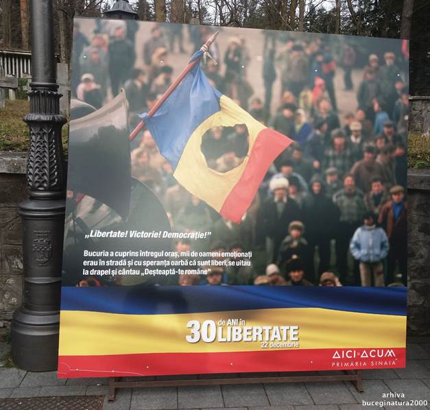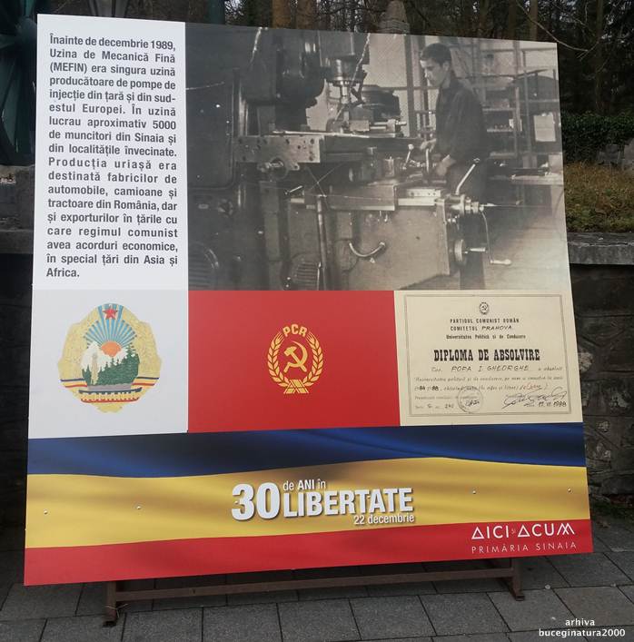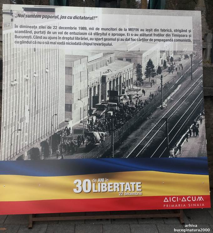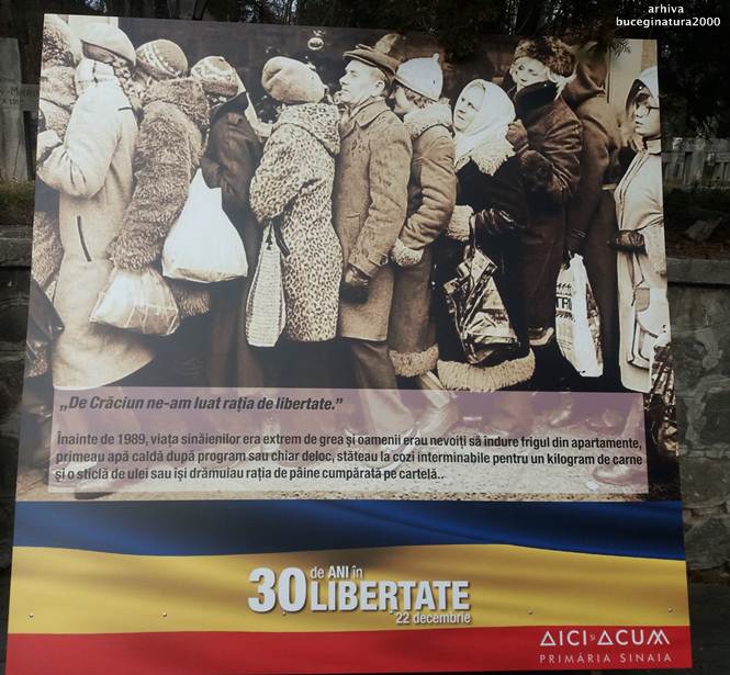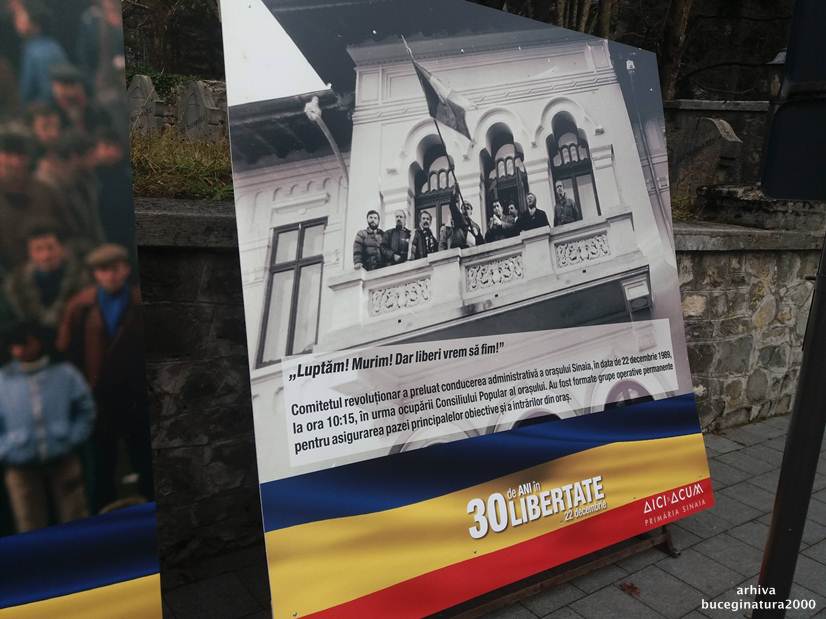 Ieri, la cimitirul eroilor din Primul Razboi Mondial situat intre Casino Sinaia si Manastirea Sinaia, cei din administratia locala pregateau terenul. Au amplasat diverse panouri care aratau ce s-a intamplat la Sinaia in urma cu 30 de ani si cum era viata in comunism.
