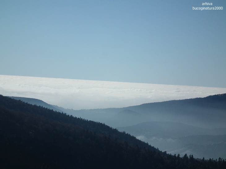 Inspre Valea Doftanei… Marea de nori a acoperit o parte din Romania, mai putin muntii.
