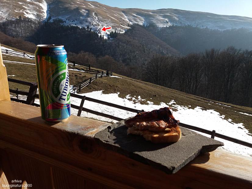 Dupa care am gasit si loc cu peisaj de admirat. Ca si aceasta e important, sa mananci si sa privesti :))) Daca e si soare, e perfect. Nu adia nici vant, am lasat gecile pe un scaun…