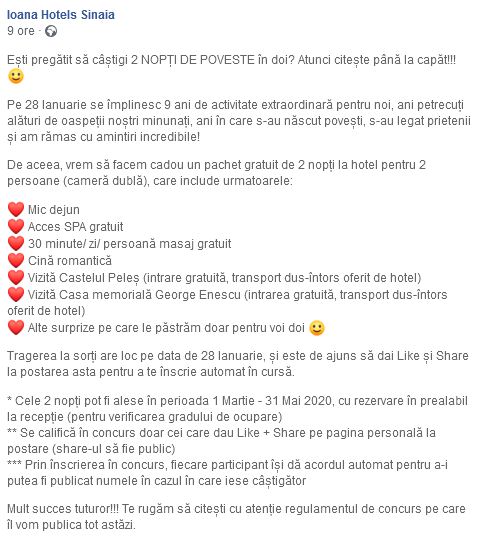 Pe pagina de Facebook este inca valabil concursul unitatii turistice, mai sunt niste zile de concurs :)