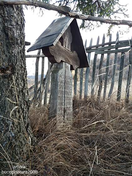 „Aceasta Sf-ta Cruce…” anul este ingropat. Micul monument (interbelic cel mai probabil) semnaliza intrarea intr-o localitate azi disparuta.