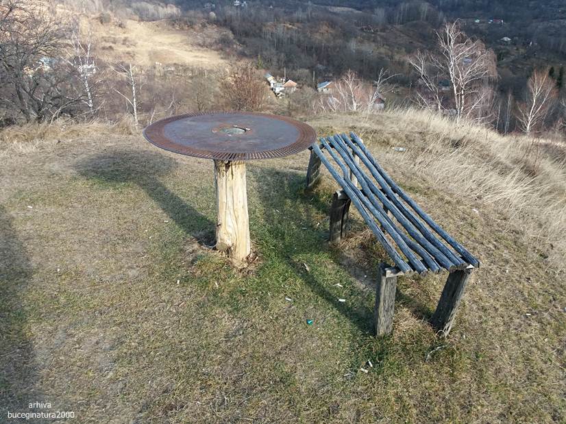 Locul de popas din Cornu are o masa care este un platou de rodaj al acelor de duze care se fabricau la Breaza.
