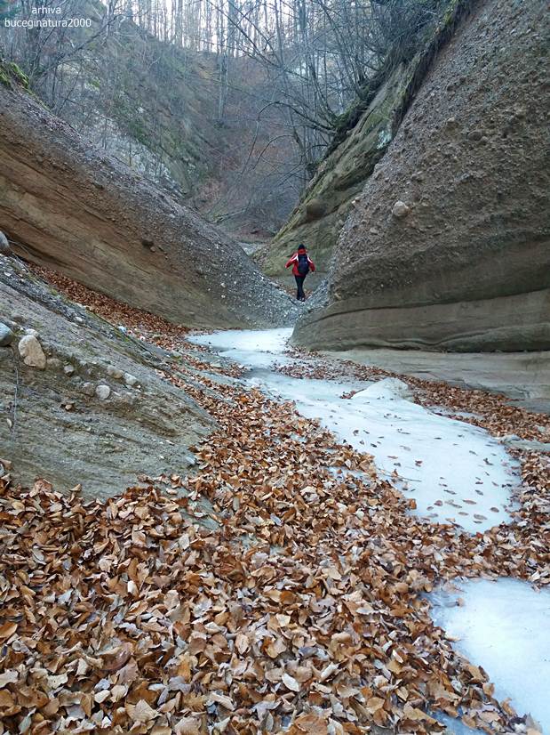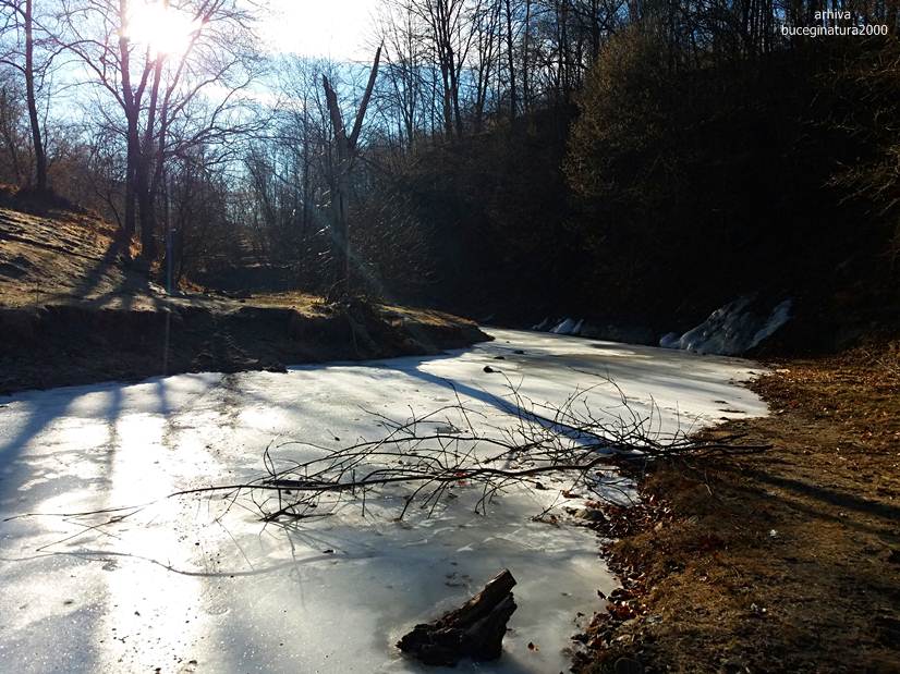Aici se auzea interesant apa… sub gheata acoperita de frunze.
