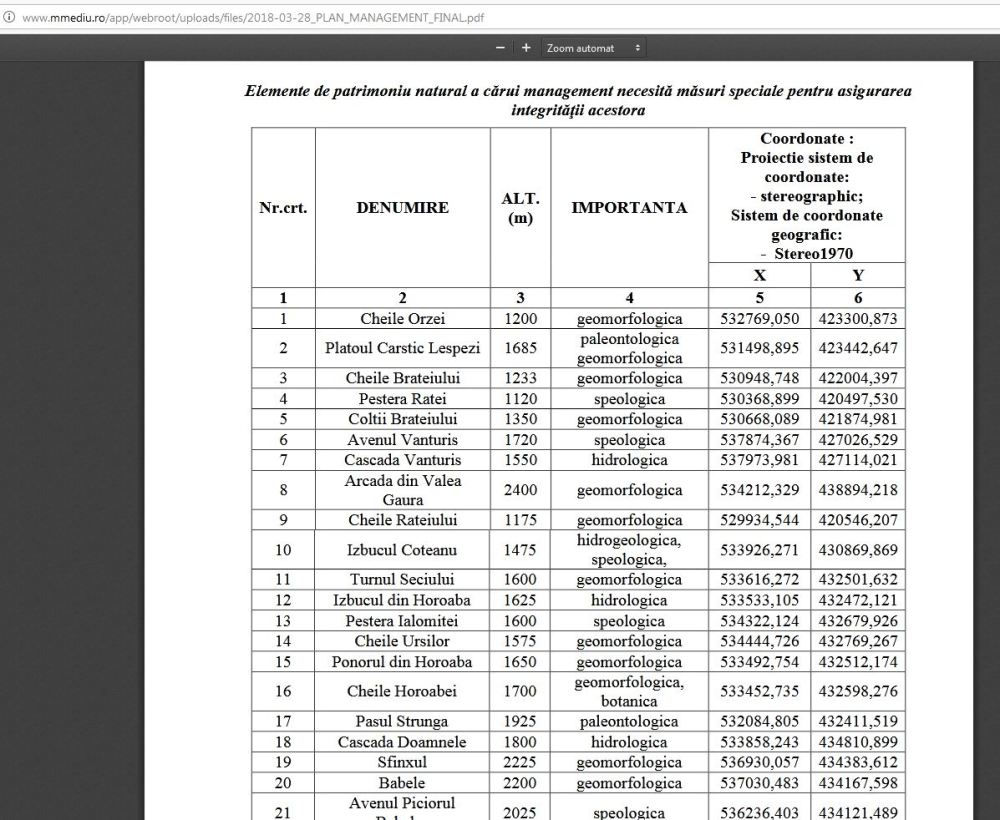 De pe site-ul ministerului, din Planul de Management al Parcului Natural Bucegi.