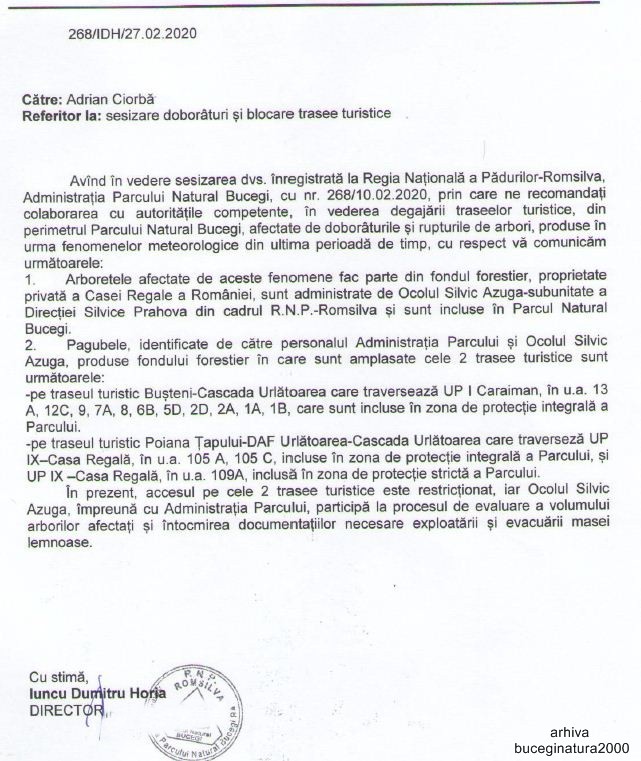 Intrebarea este de ce sa-l scoata? Mai bine sa ramana acolo si sa putrezeasca decat sa se realizeze un drum. Pentru ca pe acel drum vor curge multe transporturi lemnoase si dupa ce vor debloca traseul. Solutia ar fi sa se mearga vreo doua saptamani, zi de zi, pe jos, cu drujbe, si sa fie eliberat traseul turistic. Pai… si atat! :)