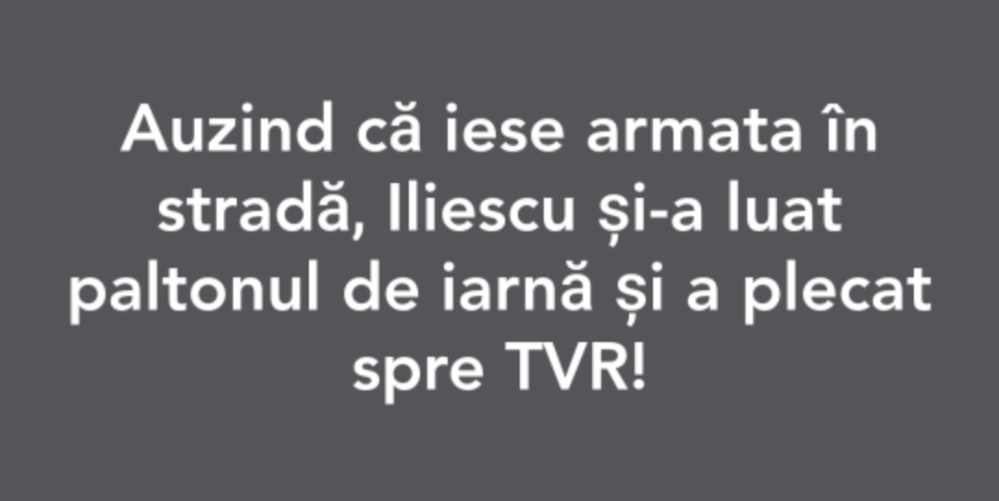 Circula pe net cateva exprimari foarte bune. Ma refer la cele normale nu la aberatii ca de ce au iesit cu arme dupa ei. Armata nu are cum altfel sa iasa. Una faina este aceasta, de mai jos:
