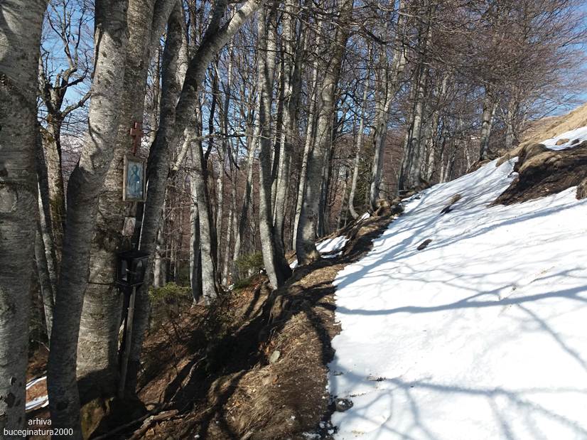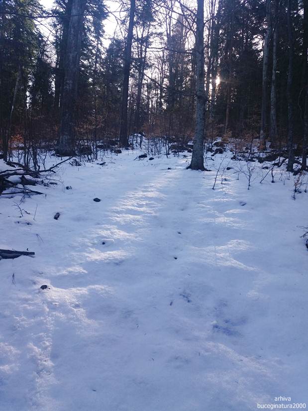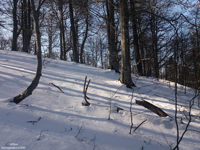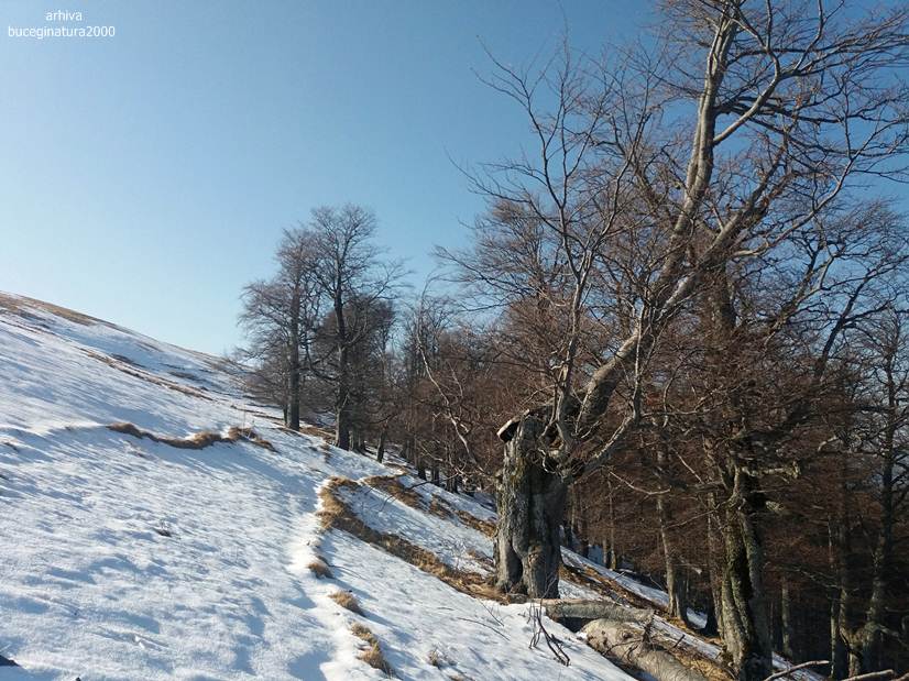Un corb se asezase departe pe o creanga de fag. Astepta sa plecam, sa vina si el la ospat. L-am aranjat bine si pe el :) Chiar ne-am scurtat sejurul si am plecat mai repede, ca sa manance si el. Mai sus, peisaj prin care mergeam fericiti… mai bogati ca bogatii :))