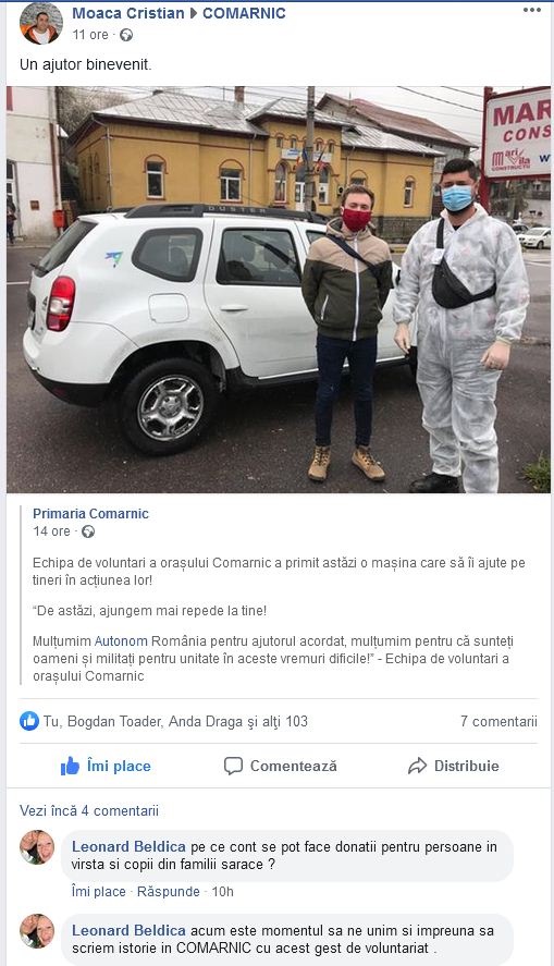 O stire din zona Vaii Prahovei ar fi ca voluntarii din Comarnic au primit o masina cu care sa ajute oamenii. Comarnicul fiind atat de risipit pe poduri si dealuri este de mers…