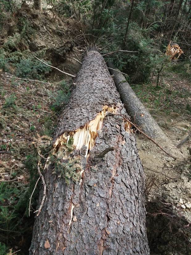 Acum alte poze cu eliberarea traseului turistic spre cascada Urlatoare; cum se vine dinspre Poiana Tapului. Eu cred ca e incorect spus eliberare. Mai degraba si-au facut loc silvicultorii care masurau cantitatea de lemn cazut: