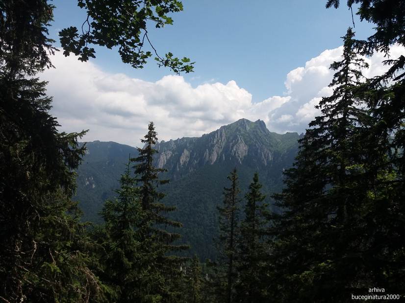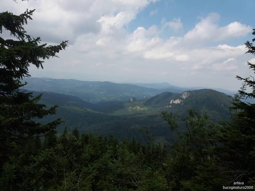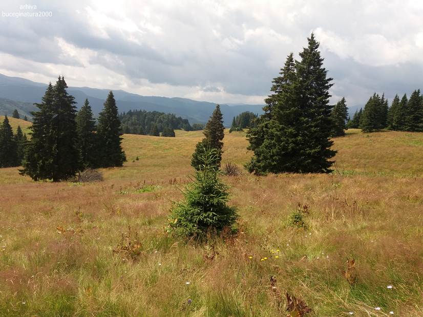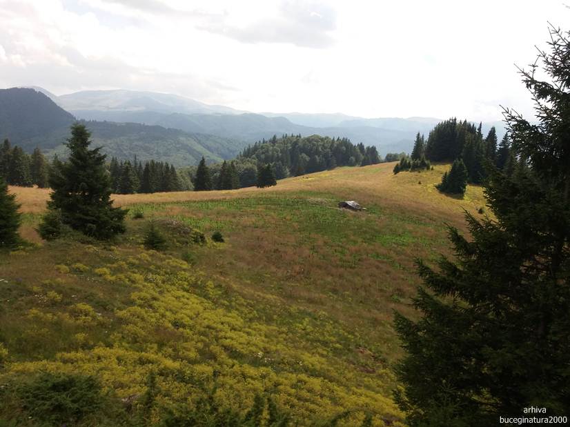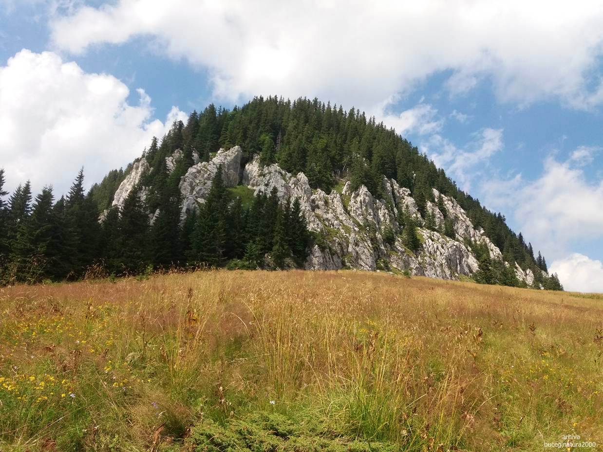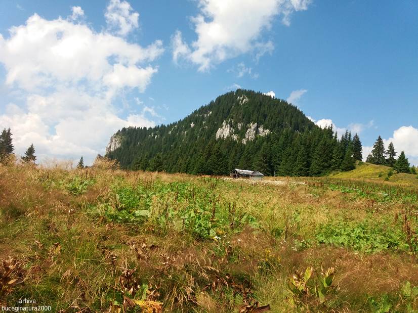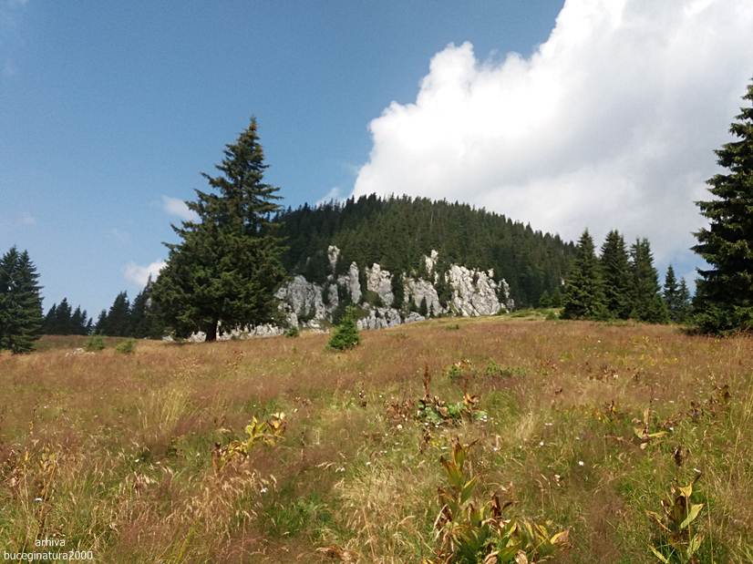 Dintr-o poiana se urca pe varful aflat la altitudinea de 1613 m. Poteca nu prea este, o ghicesti.
