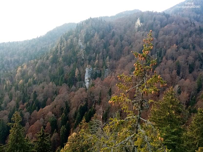 Multi turisti urcau spre Poiana Stanei asa ca, am zis sa urcam pe varfurile stancoase din imagine si nu doar pe ele.