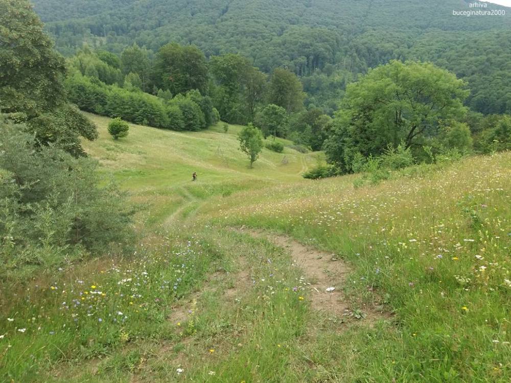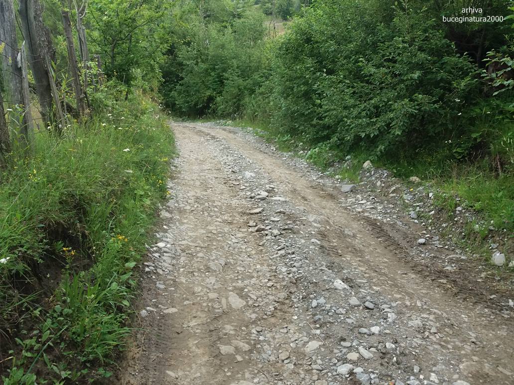 Bun! De la sageata rosie vine un drum de caruta, urat de tot; nu ai cum sa-l largesti ca te bagi pe proprietatile oamenilor, in livezile lor, pe toata intinderea pe care am trasat acele sageti galbene. Iata, mai jos, poze din vara acestui an, de pe 101T, segmentul care ar lega bazinul Doftanei de bazinul Teleajenului, adica drumul semnalizat cu sageti galbene: