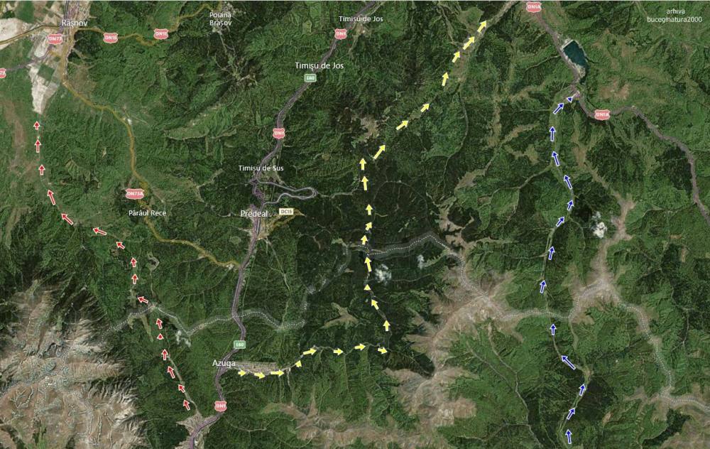 3. Valea Doftanei – Pasul Predelus – DN1A – Sacele. Existent sub forma unui drum forestier/pamant.