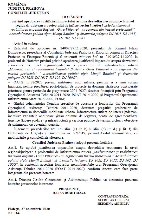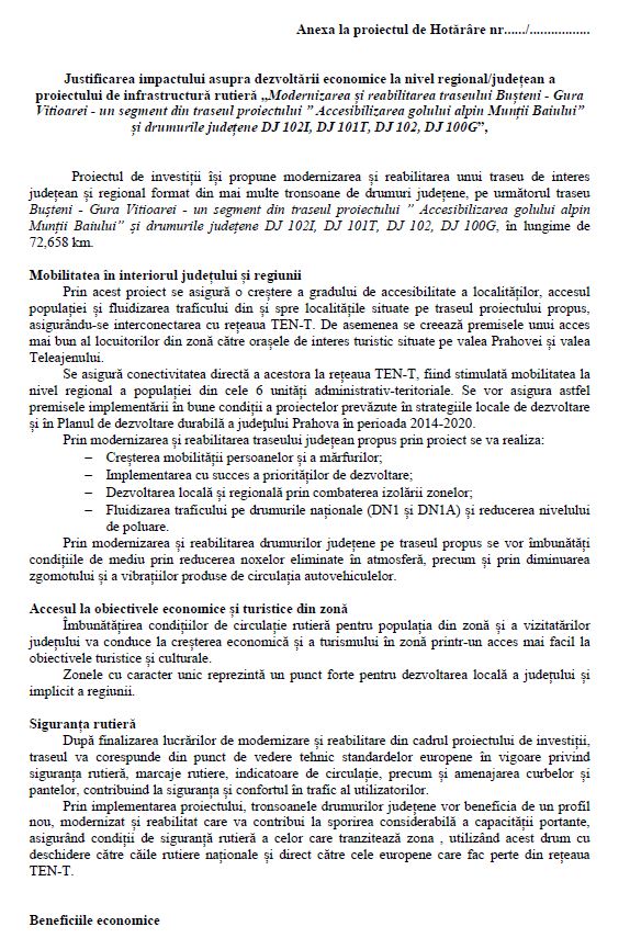 In al doilea rand, nu poti vorbi de vreo fluidizare de trafic pe DN1 si pe DN 1A intrucat aceste drumuri nationale doar strabat Prahova si fac legatura intre Muntenia si Transilvania. Tu daca faci un drum la naiba in praznic, prin munti, paduri si livezi, alte coclauri, poate o faci ca vrei sa-i ratacesti pe plan judetean. In niciun caz nu fluidizezi ceva pe drumurile nationale care leaga regiuni de alte regiuni.