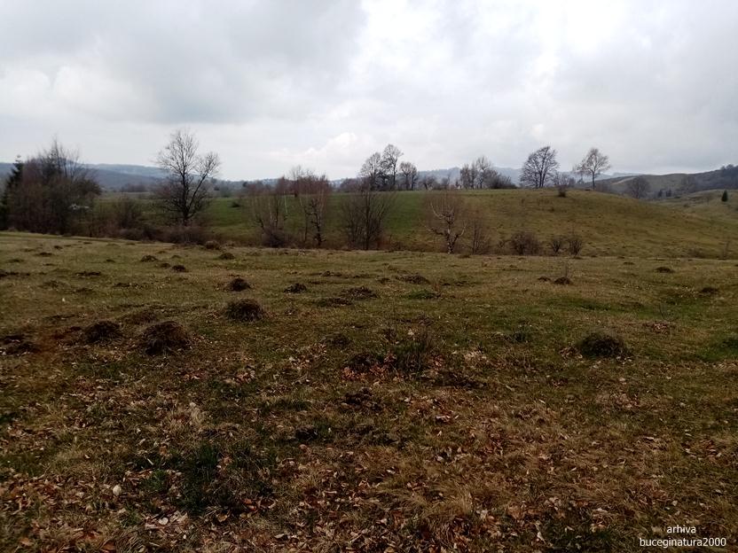 De la departare, unul dintre noi a vazut pe versantul opus un urs impresionant. Eram sigur ca tinand cont de vremea de la munte, ursii s-au dus mai la vale, unde au iesit diferite plante. In cateva ore, am vazut urme de la 4-5 ursi diferiti. Ursul pe care l-am vazut alergand, statea de fapt in varful versantului din poza de mai sus si supraveghea valea. Cum ne-a auzit, s-a ridicat si a plecat. Spun si eu: „Parea maricel!” si mi se spune: „Care naiba maricel, tu nu ai vazut cum juca blana pe el?” :))))