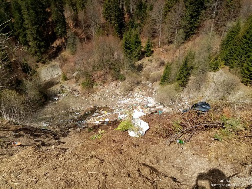 Mai mergem putin si ajungem la fosta groapa de gunoi a orasului Busteni. Cand eram mici, vedeam toata ziua iesind fum din padure. Adica, de aici: