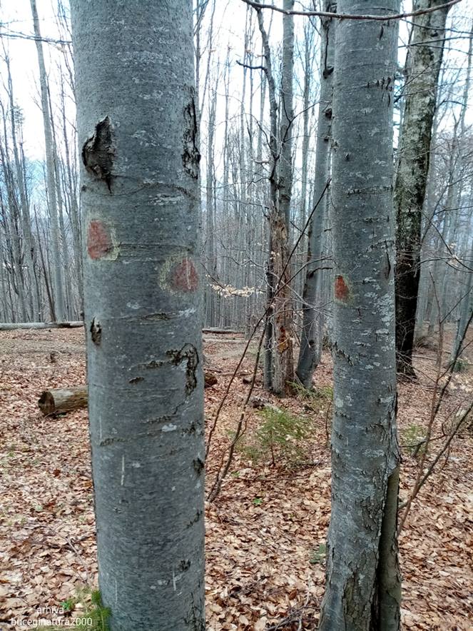 Imaginile cu marcaje vechi au rol doar de amintiri, acestea astazi nu mai folosesc la nimic. Acum peste 20 ani am fost prima oara pe aici. Mi-amintesc de o excursie prin 2006 parca, marcaje tot sterse, ceata densa, ploaie marunta, era toamna si nici urma de poteca; era sub frunze. Acest traseu era unul dificil la orientare… ne-a luat 5 ore din Posada pana la Cota 1000.