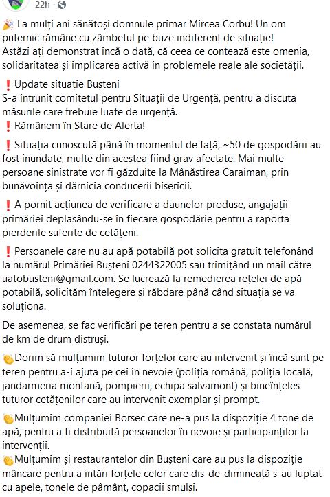 Da, a fost si este pe mai departe un exemplu de implicare la noi la Busteni, pentru ca si azi au lucrat foarte multi voluntari la decolmatari. Macar in astfel de situatii sa fim mai buni. Saru-mana!