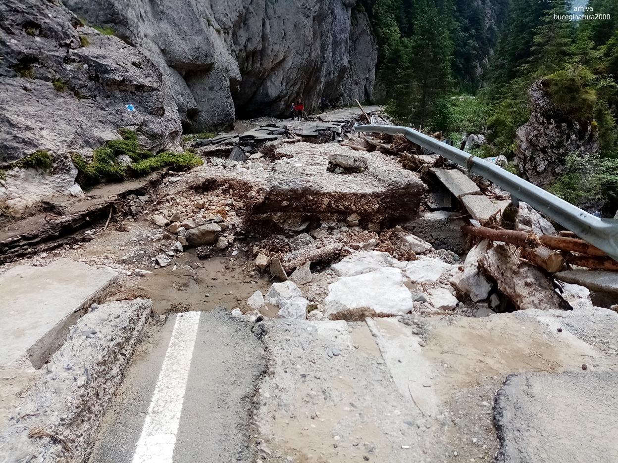 Bună, am fost și noi azi in Bucegi doar până în podul cu Flori, nu am avut curaj mai sus mai ales cu festivalul. Multa agitație elicopter Mai, 5 6 mașini poliție, 2 ambulanțe Smurd și o mașină de pompieri.Ce o fi fost? Oricum așa distrugere nu a mai fost din 2010 și atunci a fost mai ușoară și în partea de jos a Bucegilor. Oricum și traseul Moroeni- Tabăra Vânătorul- Cabana Scropoasa-Bolboci este închis până miercuri, sunt distruse podețele in chei. Ieri o turista nu a respectat panoul care interzice intrarea în traseu și s a accidentat, dând de furca salvamontului.
